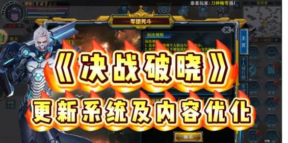 决战破晓手游在11月23日进行系统更新,本次更新将带来全新玩法系统以及内容优化。新增基因裂变、军团死斗、幻石系统、载具系统全新玩法,本期带大家来看一看!